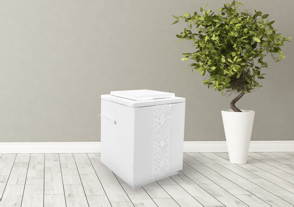 Romanttisella pitsillä somistettu, puuvillalla verhoiltu uurna. Pehmeyttä ja lempeyttä huokuva vaihtoehto.